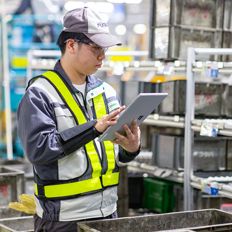 対応力を鍛える 主な仕事は、部品の手配、生産計画の立案、進捗確認、在庫管理です。お客様の受注に対して、いつまでにどのくらいを生産するのかの計画を立てて、計画がきちんと進むように工場をスケジューリングしていきます。担当する生産ラインにおいて、日々どのくらい生産するのかの計画を立てたら、現場で使う必要な部品や容器を仕入れ先に発注することや、配送用のトラック手配も大事な業務です。入社したての頃は、ミスが続いたり、対応が遅れたりして落ち込むことも多かったですが、その度に「なぜそうなったのか」と自分に問いかけて、少しずつ対策を立ててきました。その結果、日々の変化にも柔軟に対応できるようになり、特に難しい状況などを乗り越えた時には、とてもやりがいを感じます。